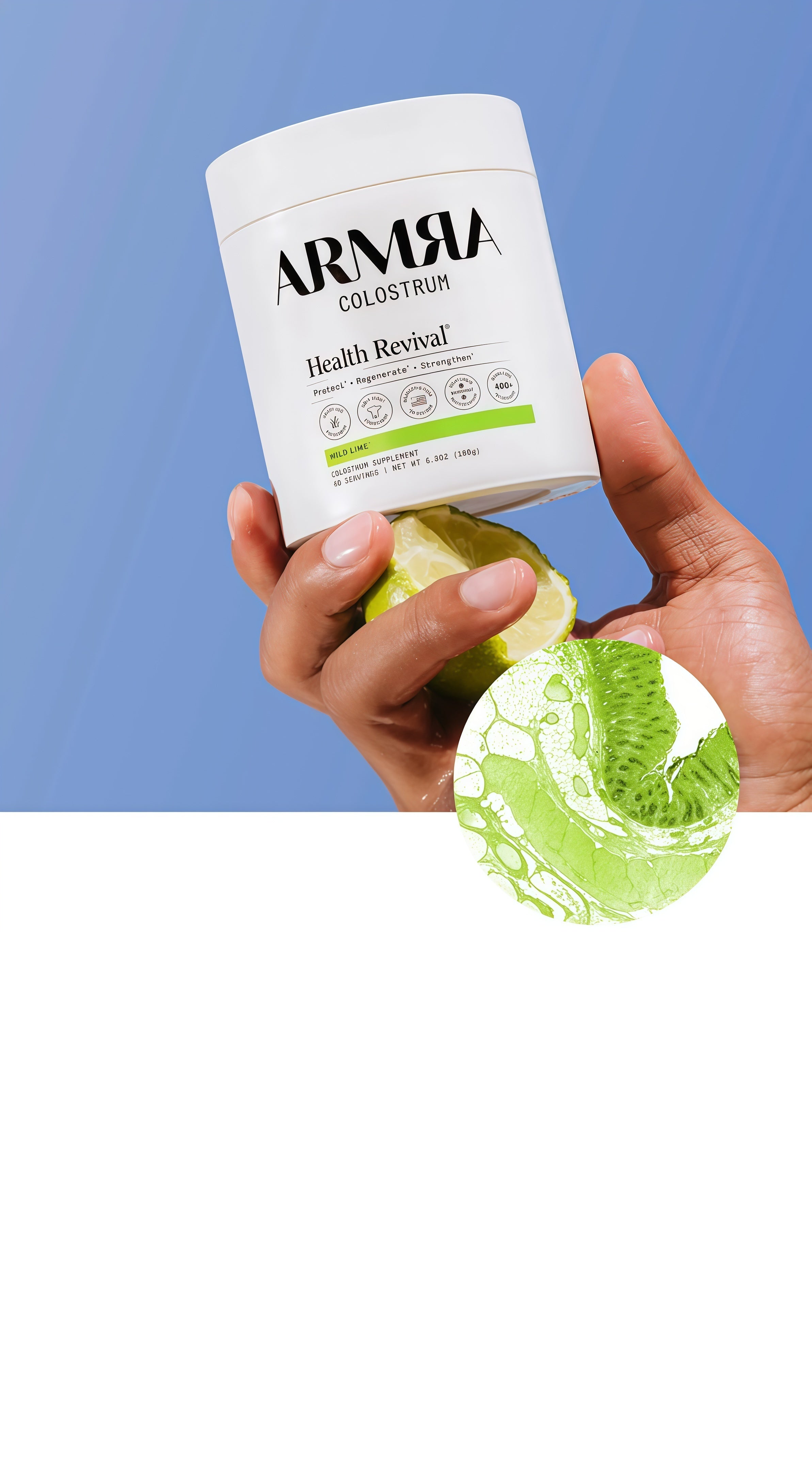 Harnessing the power of over 400 bioactive nutrients from colostrum, ARMRA Colostrum® offers compelling benefits for the body’s best health and performance. Strengthen your immune barriers, nourish your microbiome, and empower your body with the blueprint to revitalize health from the inside out.